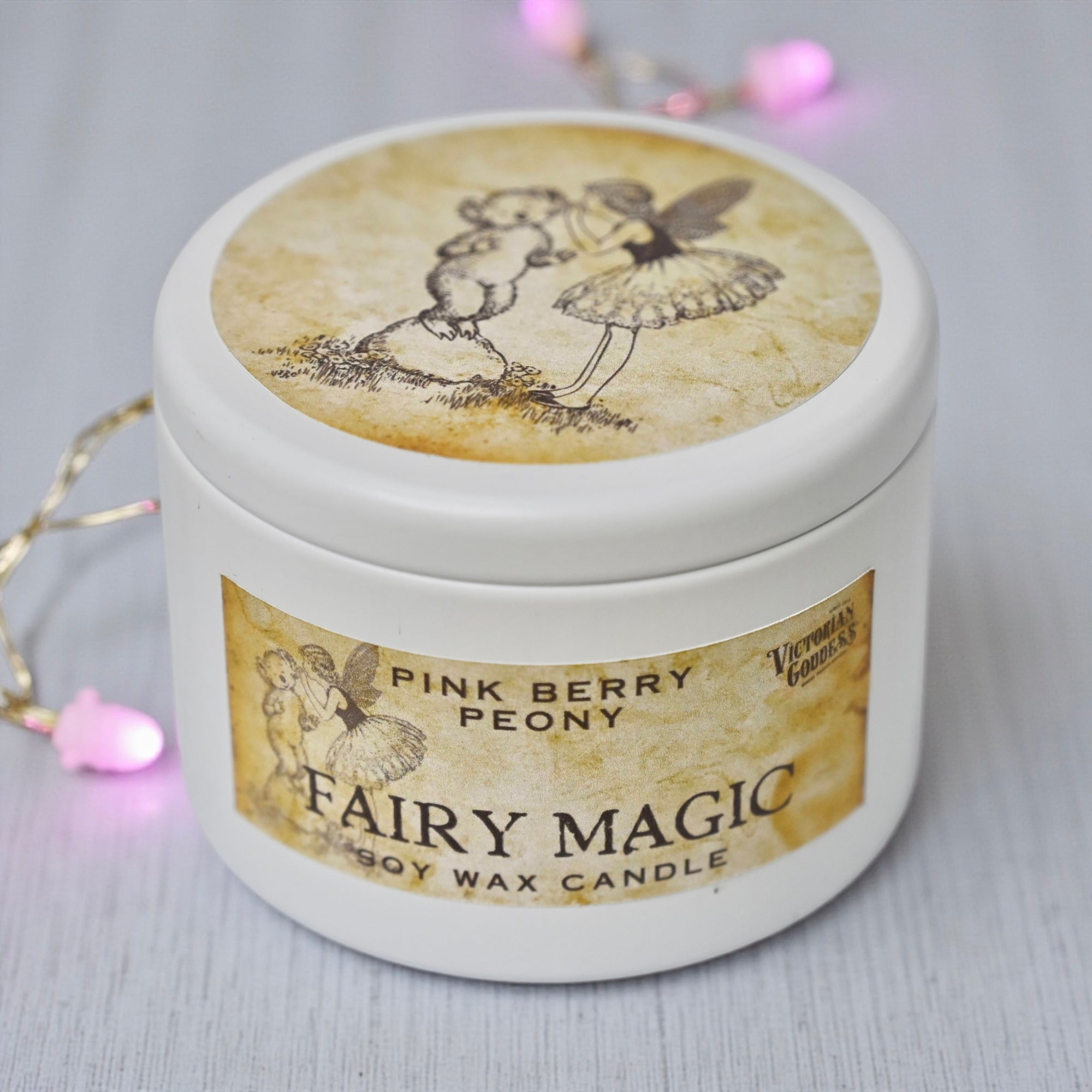Hand-poured using premium soy wax, this candle is fragranced with Pink Berry Peony — a delicate blend of fresh berries and blooming florals. Light, sweet and uplifting, the fragrance evokes innocence, joy and the quiet magic of fairy realms, filling your space with a sense of playfulness and gentle beauty.