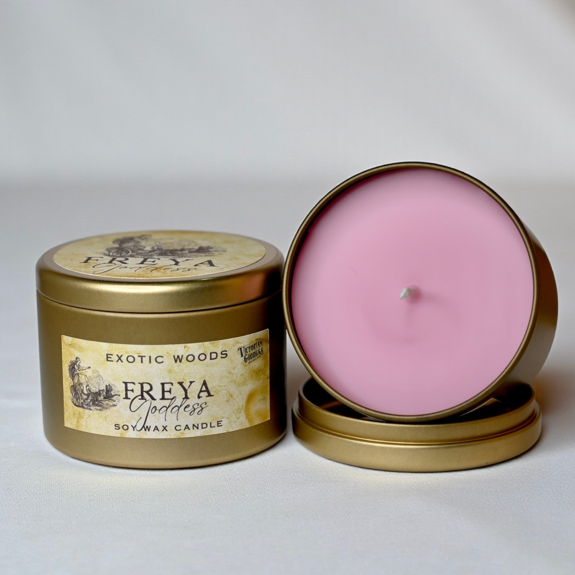 Hand-poured with premium soy wax, this candle is infused with an alluring Exotic Woods fragrance. A rich, grounding blend of warm woods, soft resins, and subtle spice. Earthy yet sensual, this fragrance reflects Freya’s dual nature: both tender lover and fierce warrior.